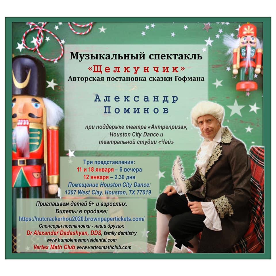 Детские новогодние спектакли «Волшебный бал сказок» – 2013 «Муж для Бабы Яги» – 2014 «Двое из ларца и Мэри Поппинс» – 2018 Моно-спектакль «Щелкунчик» – 2020